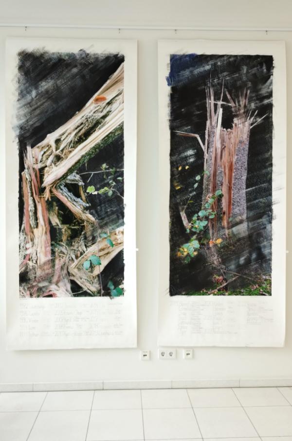 Z.B. wurden Fotos auf FineArt-Papier gedruckt und anschließend dezent mit Farbe übermalt. Oder Fotos mit persönlichen Statements beschriftet.