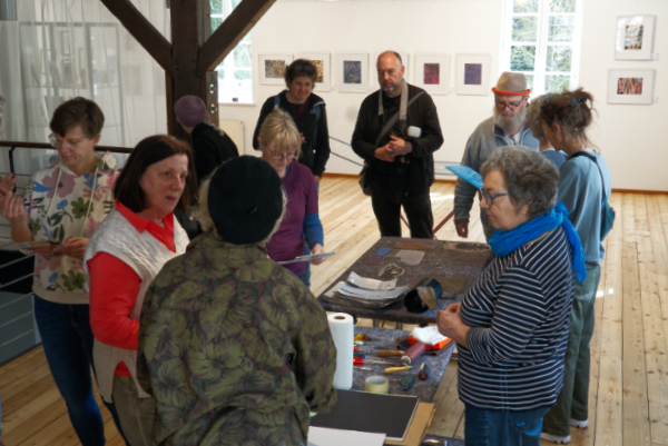 14 Teilnehmer*innen sowie einige Zuschauer*innen konnten sich selbst ein Bild machen, wie viel Spaß – aber auch Mühe – es macht, einen Druck vorzubereiten. Oder sich experimentell darauf ein- und überraschen zu lassen. Doch mit den Ergebnissen waren alle sehr zufrieden.