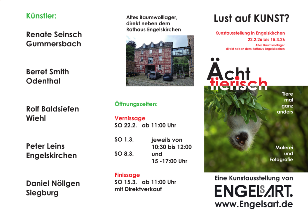 Kunstausstellung vom 22.2.2026 bis 15.3.2026 im Alten Baumwolllager, direkt neben dem Rathaus Engelskirchen.